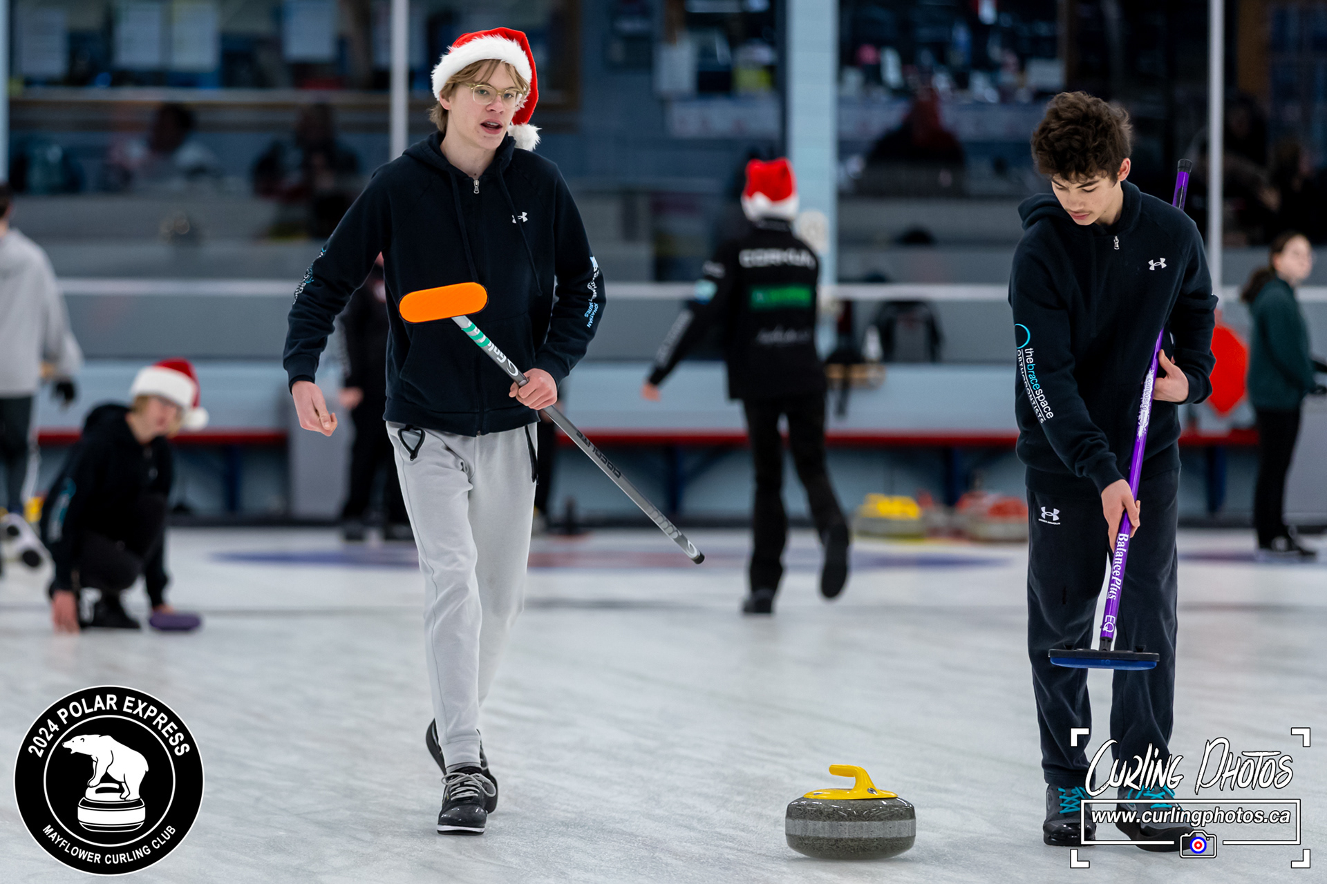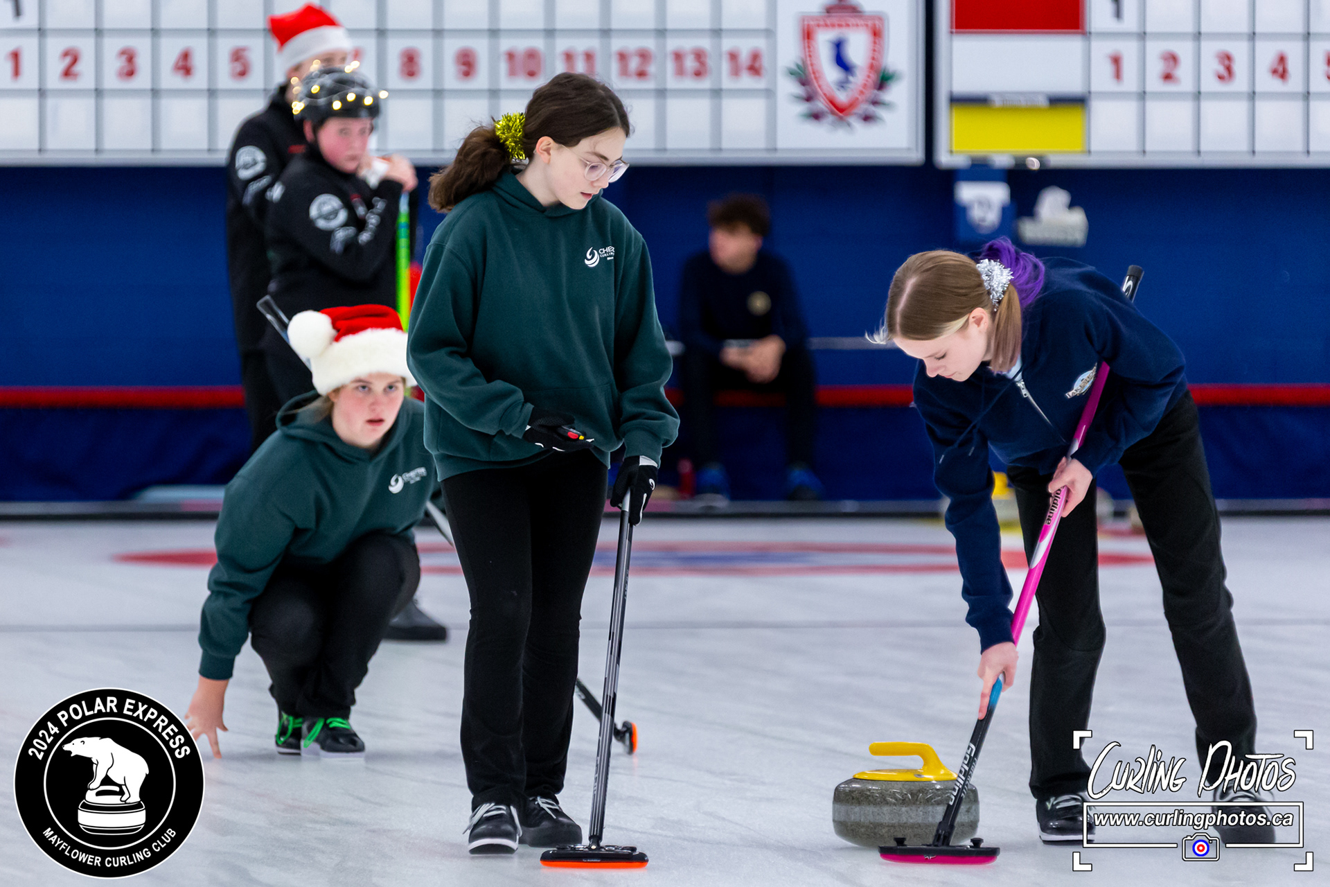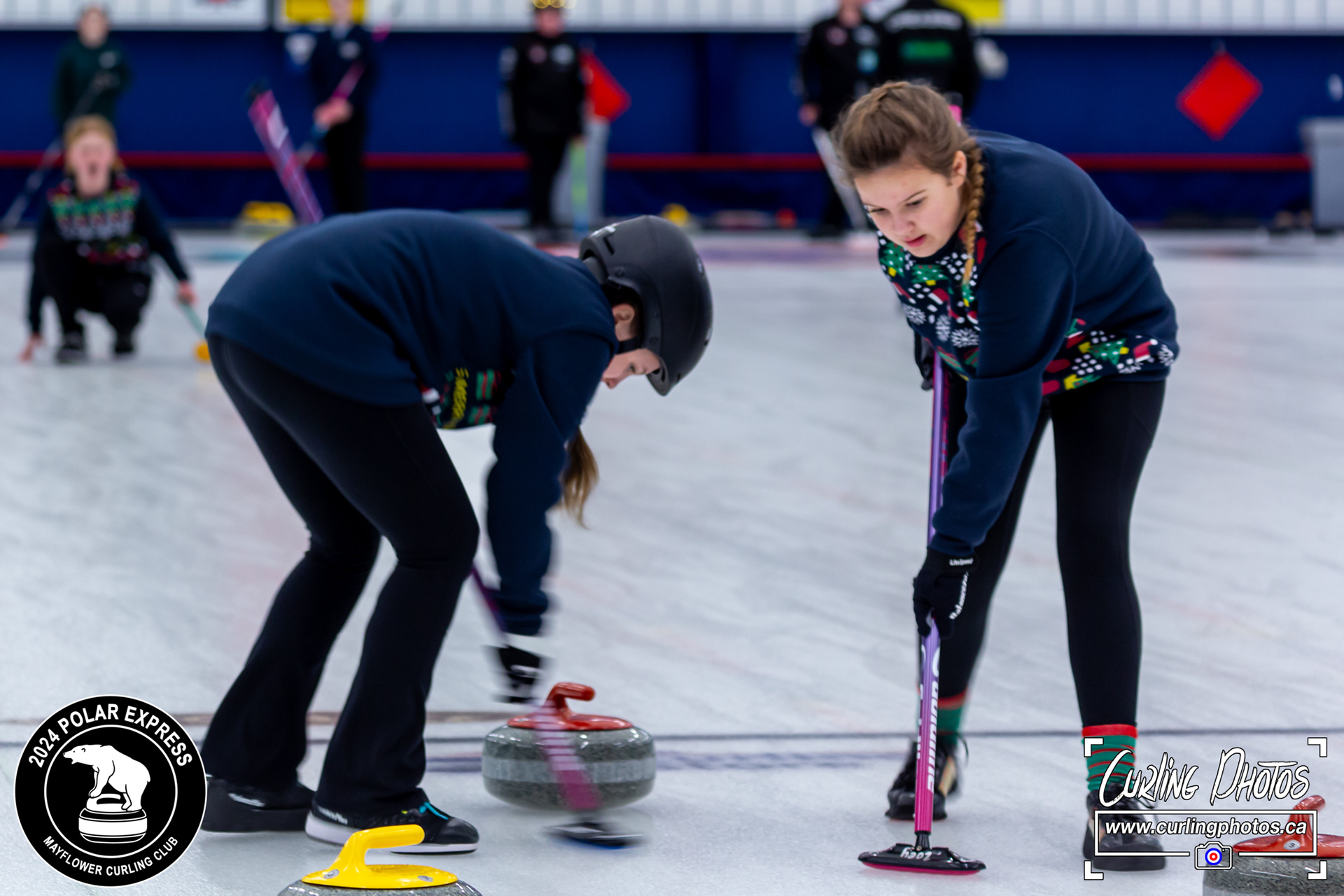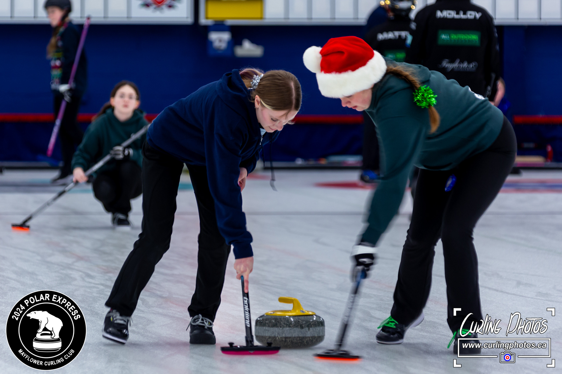 Neither rain, nor snow, nor sleet, nor hail shall keep these curlers from participating in the annual Polar Express at the Mayflower Curling Club! The overnight snow was not enough to keep these curlers from the fun... although it has definitely created some challenges!