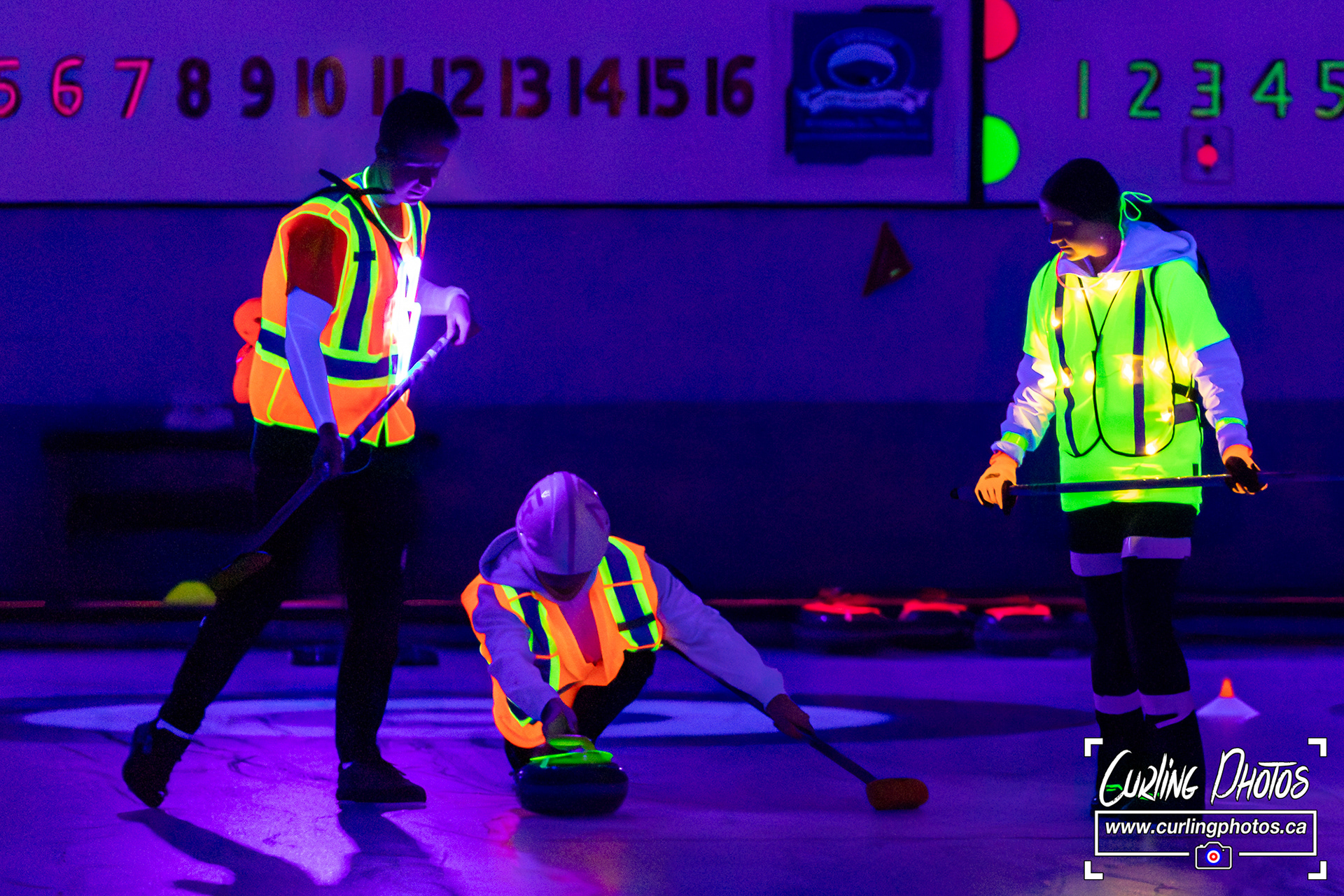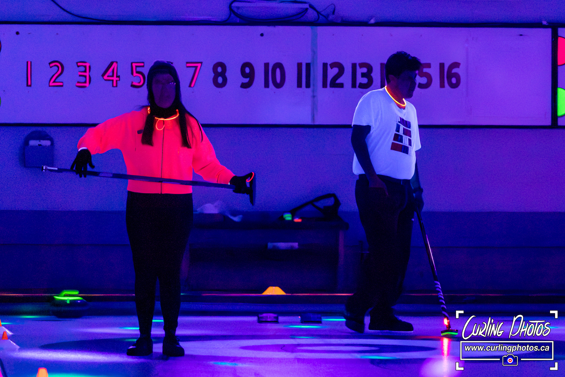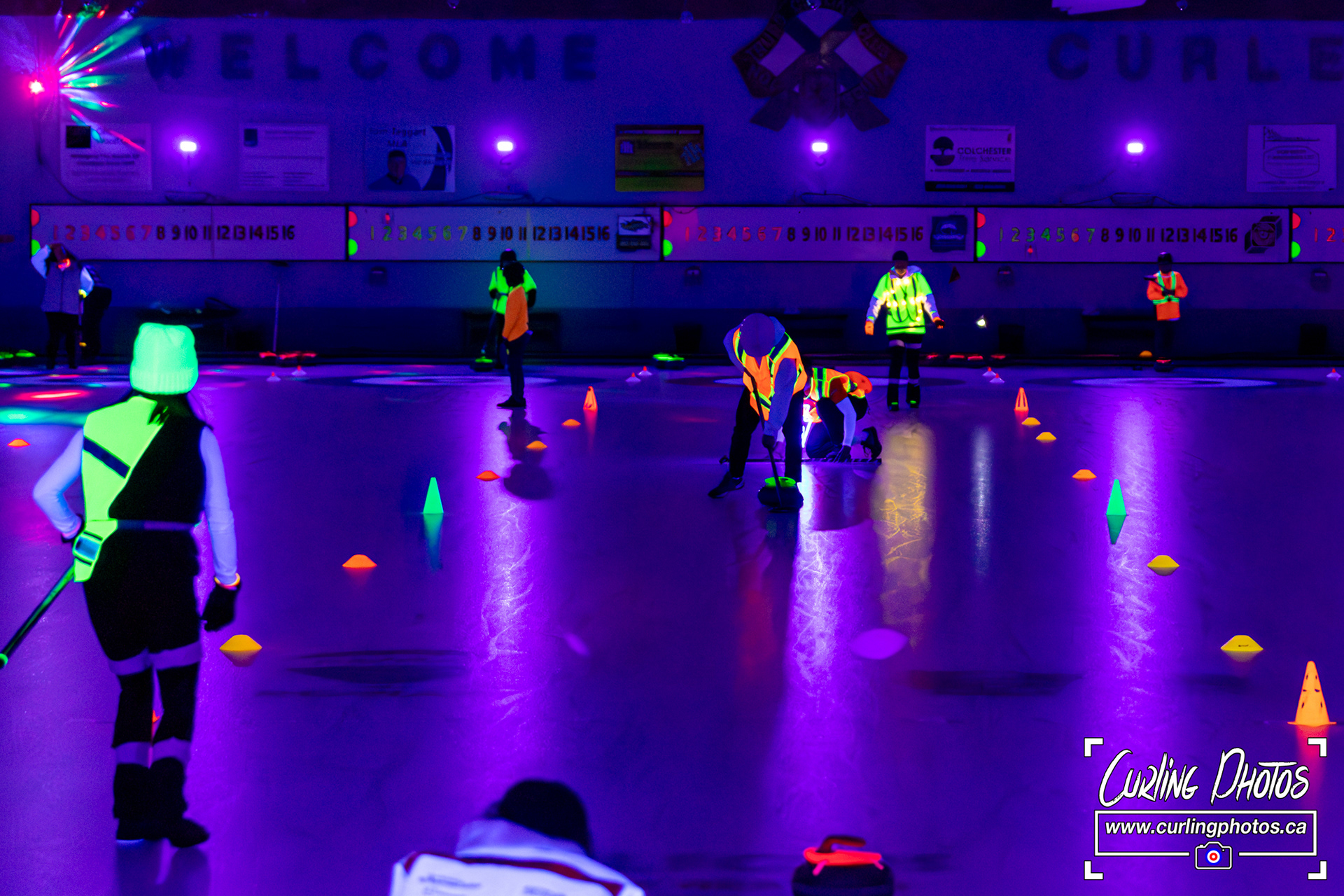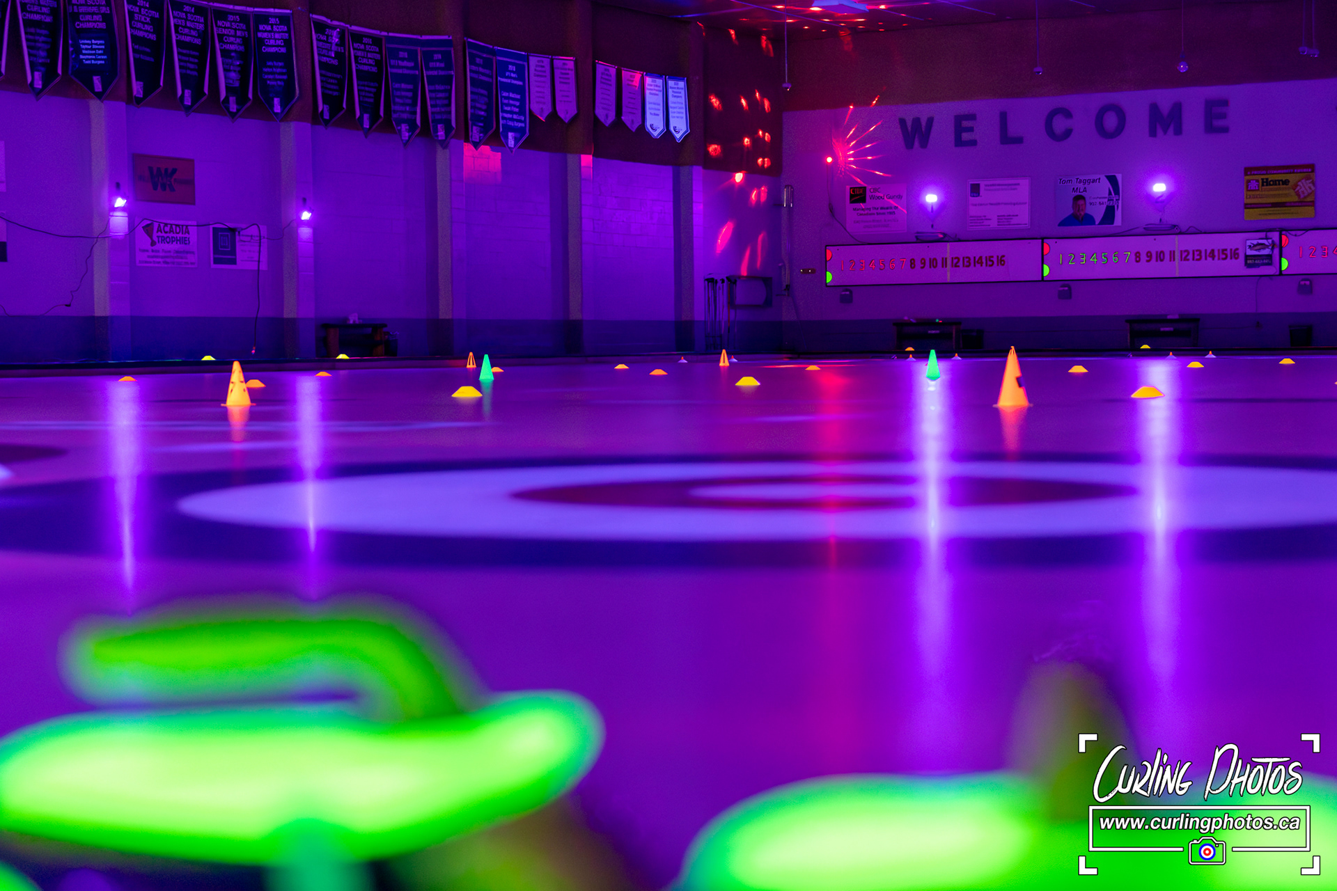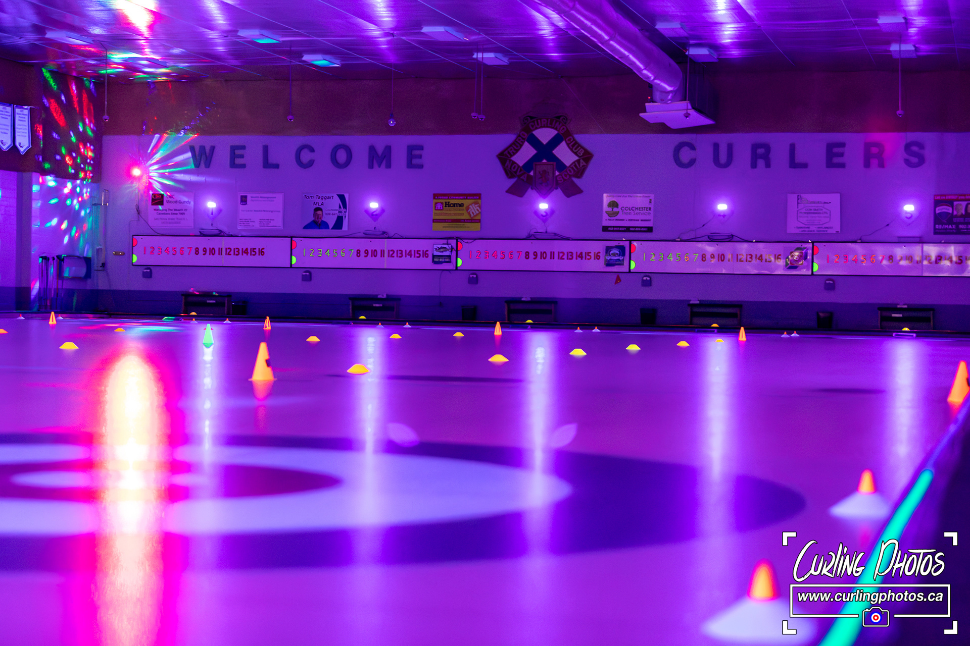 An annual tradition - Glow Curling at the Truro Curling Club Lots of black lights added by Martin Fisher to add a twist to the otherwise normal happenings at the Truro Curling Club!