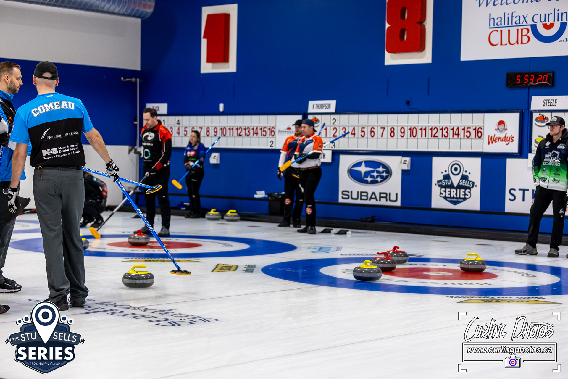 Stu Sells 1824 - Draw #7 Sheet 1: Team Black vs. Team Regan Sheet 8: Team Thompson vs. Team G. Smith Sheet 2: Team MacIsaac vs. Team Steele Sheet 4: Team Godsland vs. Team Adams Halifax Curling Club