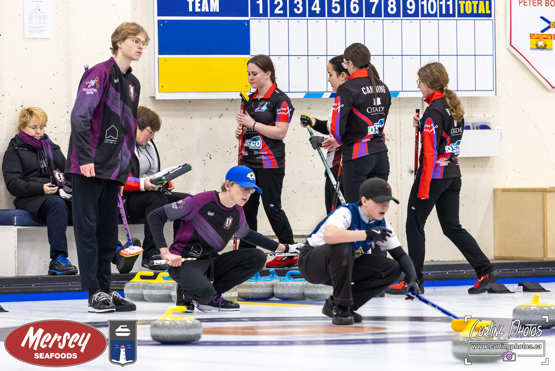 The final rounds of qualifier play at the @NSCurl Mersey Seafoods U18 Provincials as teams seek final placements for the playoffs! Congratulations to all of the teams for reaching this level in the competition! Sheet A: - Sheet B: (GIRLS) Team Gouthro vs. Team Cook Sheet C: (BOYS) Team Livingston vs. Team Ley Sheet D: (BOYS) Team Berrigan vs. Team Salzman Sheet E: (GIRLS) Team McEvoy vs. Team Black Sheet F: -