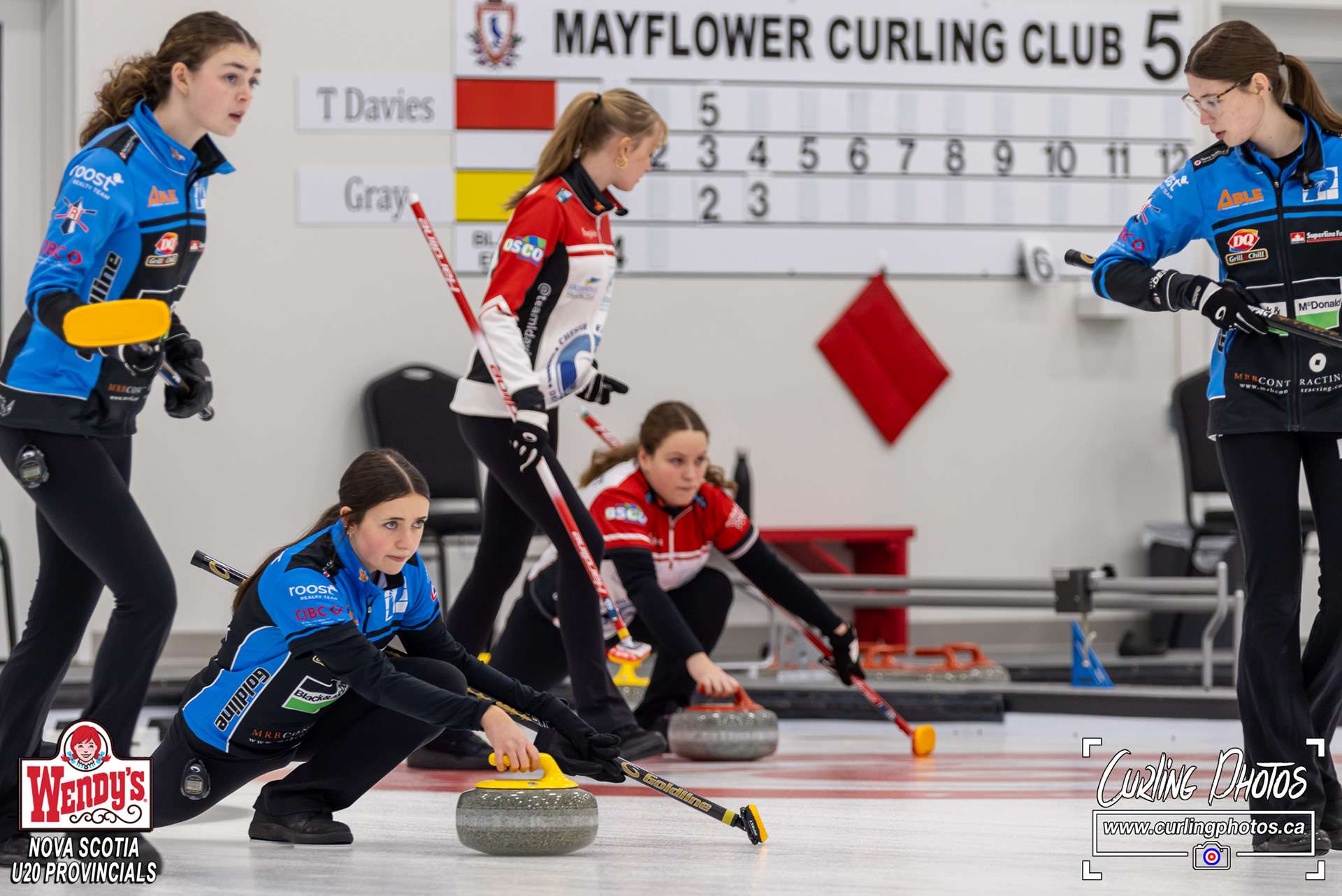 Nova Scotia Curling U20 Wendy’s Provincials Mayflower Curling Club Women: Sheet 1: Team S. Blades vs. Team Pembleton Sheet 2: Team McEvoy vs. Team Erhardt Sheet 3: Team C. Blades vs. Team Regan Sheet 4: Team L. Davies vs. Team Gates Men: Sheet 5: Team Gray vs. Team T. Davies Sheet 6: Team Strang vs. Team Ley Sheet 7: - Sheet 8: Team Atherton vs. Team Lockhart